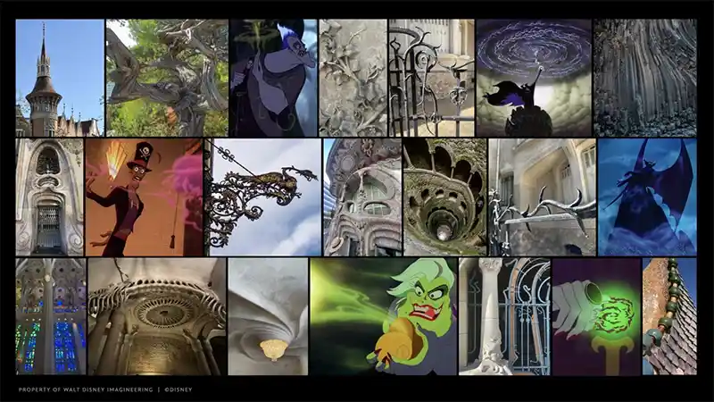 A equipe de Imagineers compartilhou as inspirações por trás do design e da atmosfera da nova área, que promete um toque sombrio e diabolicamente divertido.